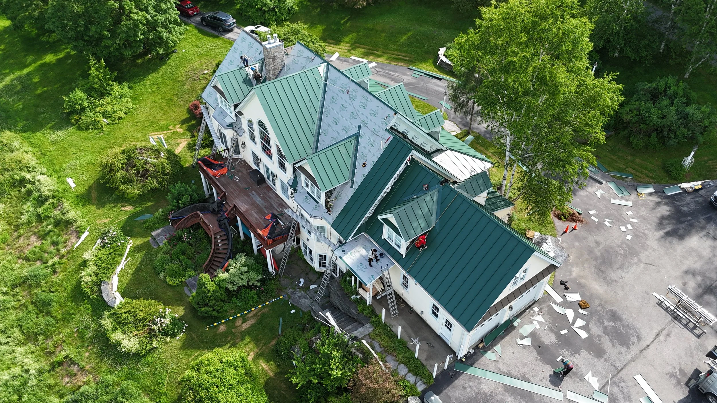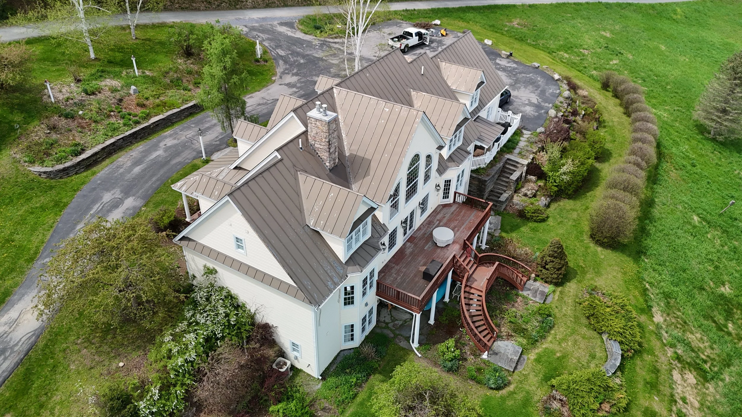We replaced the existing roof with a new forest green Englert standing seam metal roof on this large residential property in Waterbury, Vermont. The installation included full removal of the old roofing system, new underlayment installation, and precision-fitted standing seam panels to ensure long-term durability, weather resistance, and clean architectural lines that complement the home’s design. This upgrade not only enhances the aesthetic of the property but also provides superior protection against Vermont’s harsh seasonal conditions.